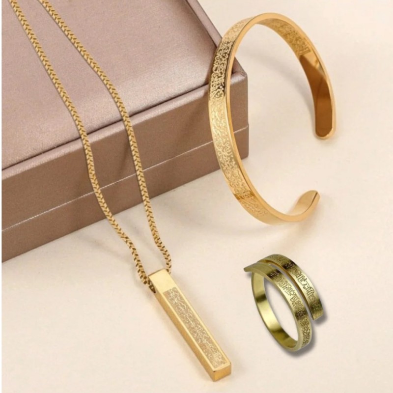 Ayatul Kursi Golden Bar Locket & Bracelet & Ring