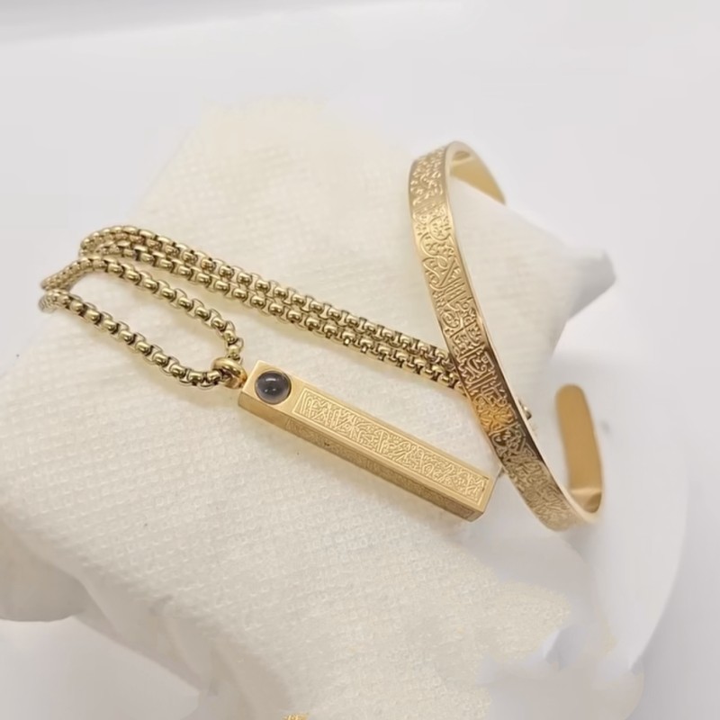 Ayatul Kursi Locket – Bracelet Combo Set – golden color(with lens)