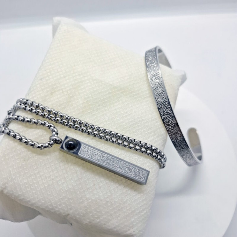 Ayatul Kursi locket _bracelet Silver Color(with lens)
