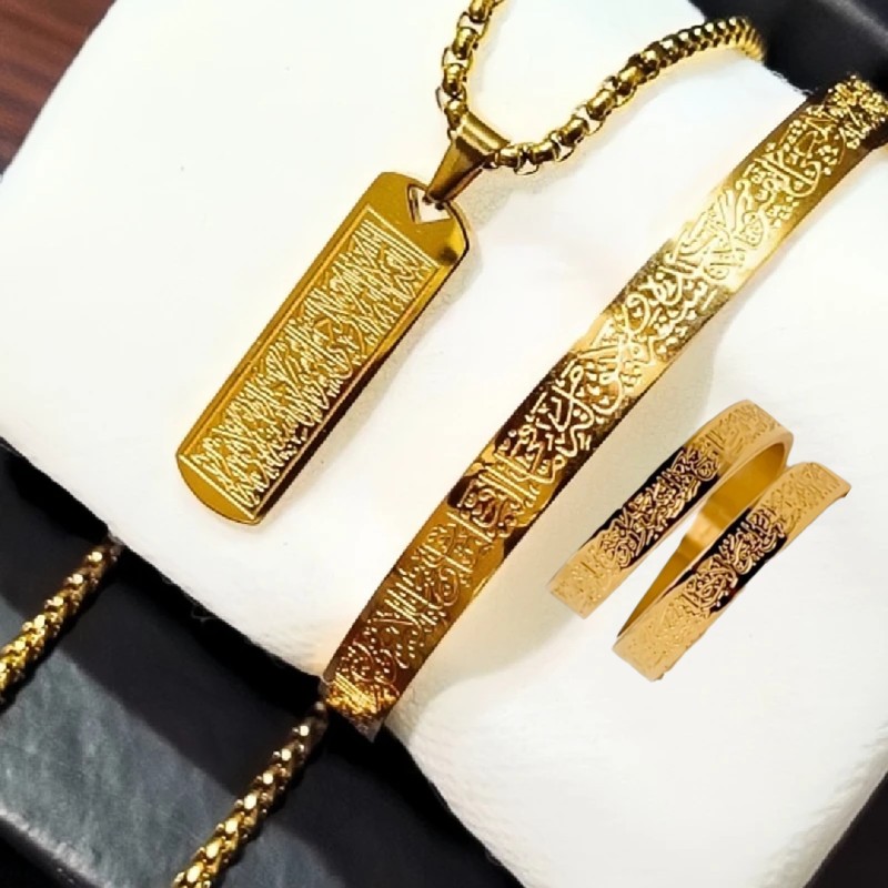 Ayatul Kursi locket-bracelet-ring Golden Colour (combo)