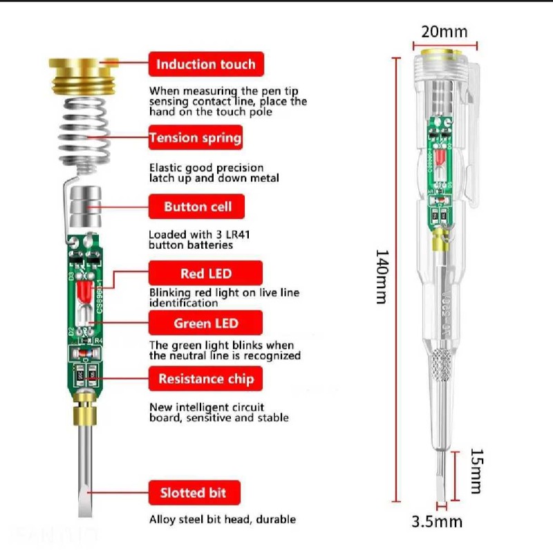 ব্যবহার: সকেট, সুইচ, লাইভ তার দ্রুত ও নিরাপদভাবে পরীক্ষা করতে আদর্শ।